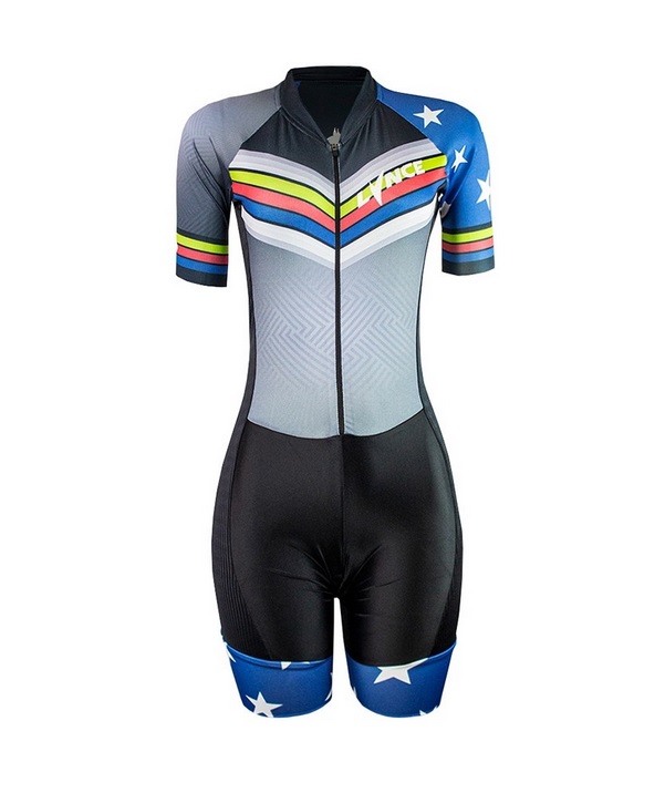 O Macaquinho Ciclismo Lynce é produzido em poliamida com elastano. Sua costura é feita com fios de elastano preto, para evitar a transparência no uso. Possui o sistema de zíper semiautomático com trava, evitando que o macaquinho fique abrindo o zíper sozinho. Sua manga é furadinha, para ter uma melhor transpiração. O barrado é feito em corte a laser, oferecendo maior conforto nos seus pedais. Nas costas contém bolsos e dentro de um dos bolsos possui um bolso embutido. Sua forração é em gel, oferecendo maior conforto. Contém detalhes em pedraria trazendo mais sofisticação e beleza para seu pedal.